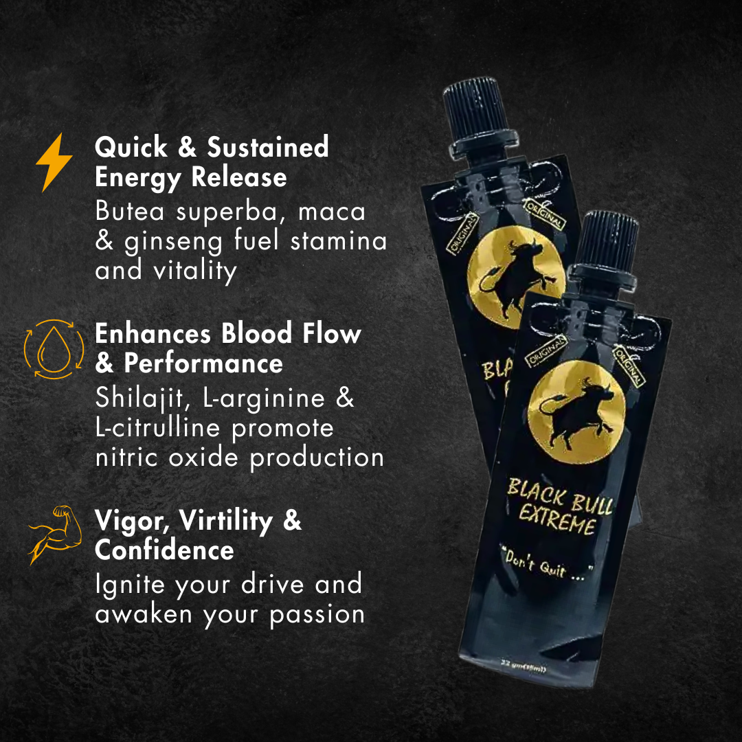 A premium men’s supplement that delivers an instant lift with lasting vitality. Crafted with a potent natural blend— including Butea Superba Extract, Maca Extract, and Ginseng Extract—Blackbulls helps fuel your day so you can perform at your best in work, workouts, and life.